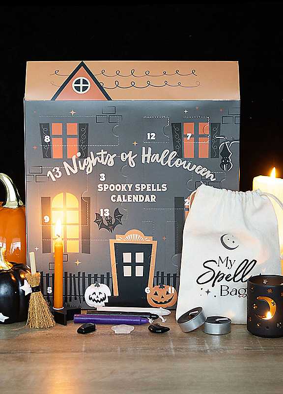 Count down to the spookiest night of the year with our 13 nights of Halloween spooky spells advent calendar. Each door reveals a new magickal surprise for repelling unwanted energies and celebrating the season of spirits. Whether you're a seasoned witch or new to spellcasting, our advent calendar is perfect for making Halloween night truly spellbinding. Calendar contents include: coffin-shaped obsidian crystal, crescent moon shaped obsidian crystal, mini magic broomstick, mystical moon tealight holder, 2 opium fragranced tealights, star shaped clear quartz crystal, black star spell candle holder, white spell candle, orange spell candle, purple spell candle, black spell candle and a drawstring bag for easy storage.