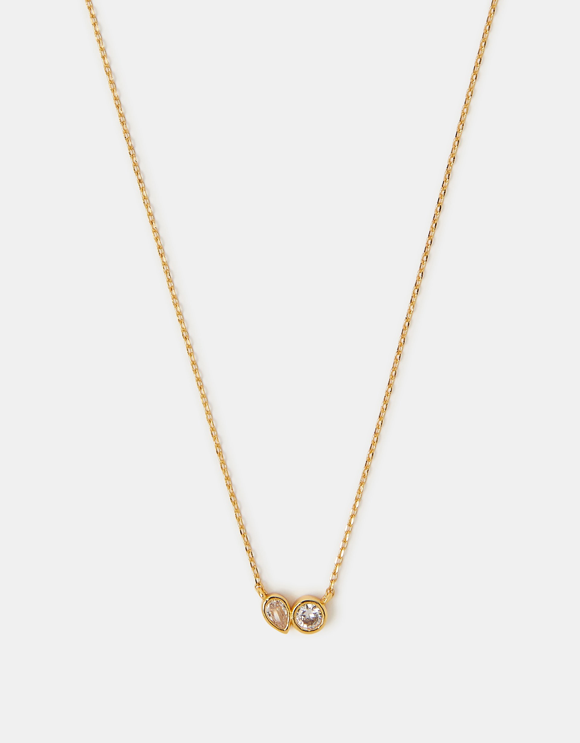 Part of the Z by Accessorize collection: jewellery designed to dazzle and shine, it’s plated in 14 carat gold for a luxe, longer-lasting finish. Bringing a sparkling endnote to all your looks, this necklace showcases two cubic zirconia stones in a round and teardrop finish. Bling, bling.