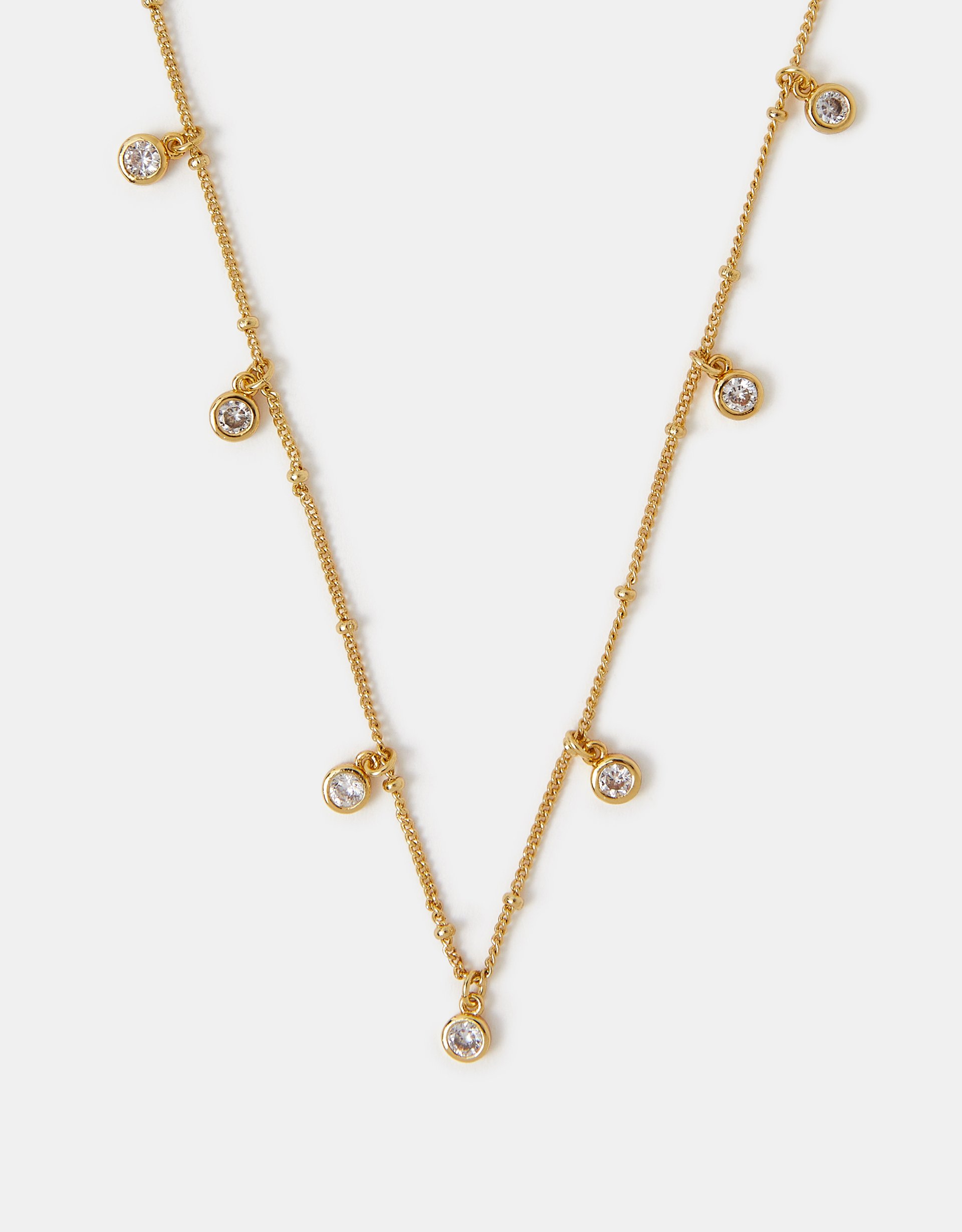 Part of the Z by Accessorize collection: jewellery designed to dazzle and shine, it’s plated in 14 carat gold for a luxe, longer-lasting finish. Intricate and understated, this necklace features stationed mini beads and cubic zirconia charms, adding a touch of sparkle to your look. Accessorising you from day to night, it can be stacked with other chains or styled solo.