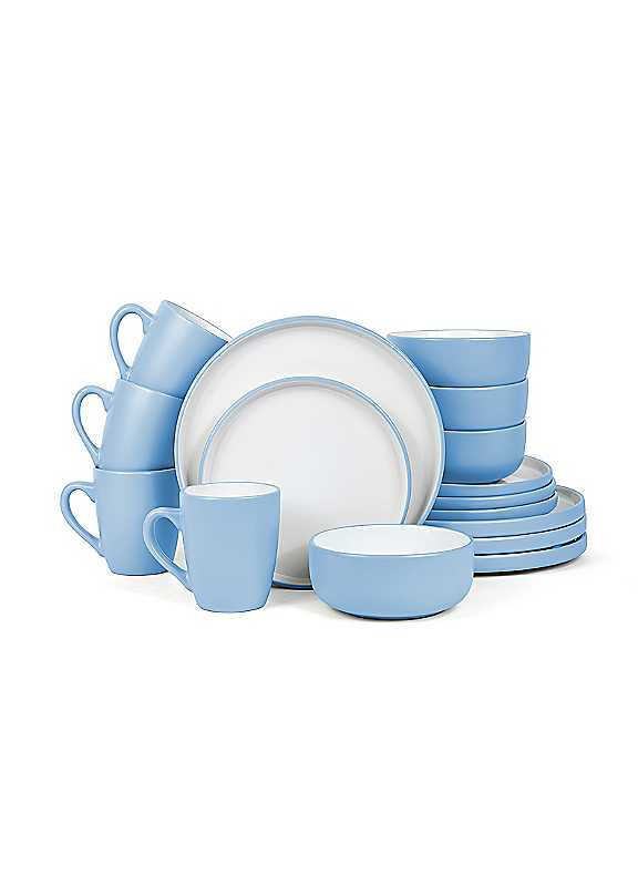 Bring subtle elegance and contemporary charm to your table with the 16-piece Pastel Two-Tone Blue Dinner Set. Crafted from durable stoneware, this set features a beautiful pastel blue matte exterior paired with a smooth, glossy interior, creating a modern and inviting look. Perfect for everyday dining or casual entertaining.Set Includes:4 x Dinner Plates4 x Side Plates4 x Bowls4 x MugsFeatures:Stylish two-tone design with pastel blue matte finish and glossy interiorMade from sturdy, chip-resistant stonewareMicrowave and dishwasher safe for easy careIdeal for modern kitchens, casual meals, and giftingElevate your dining experience with the understated beauty of the Pastel Two-Tone Blue Dinner Set - where simplicity meets style.16 piece setDishwasher safe & microwave safeStoneware