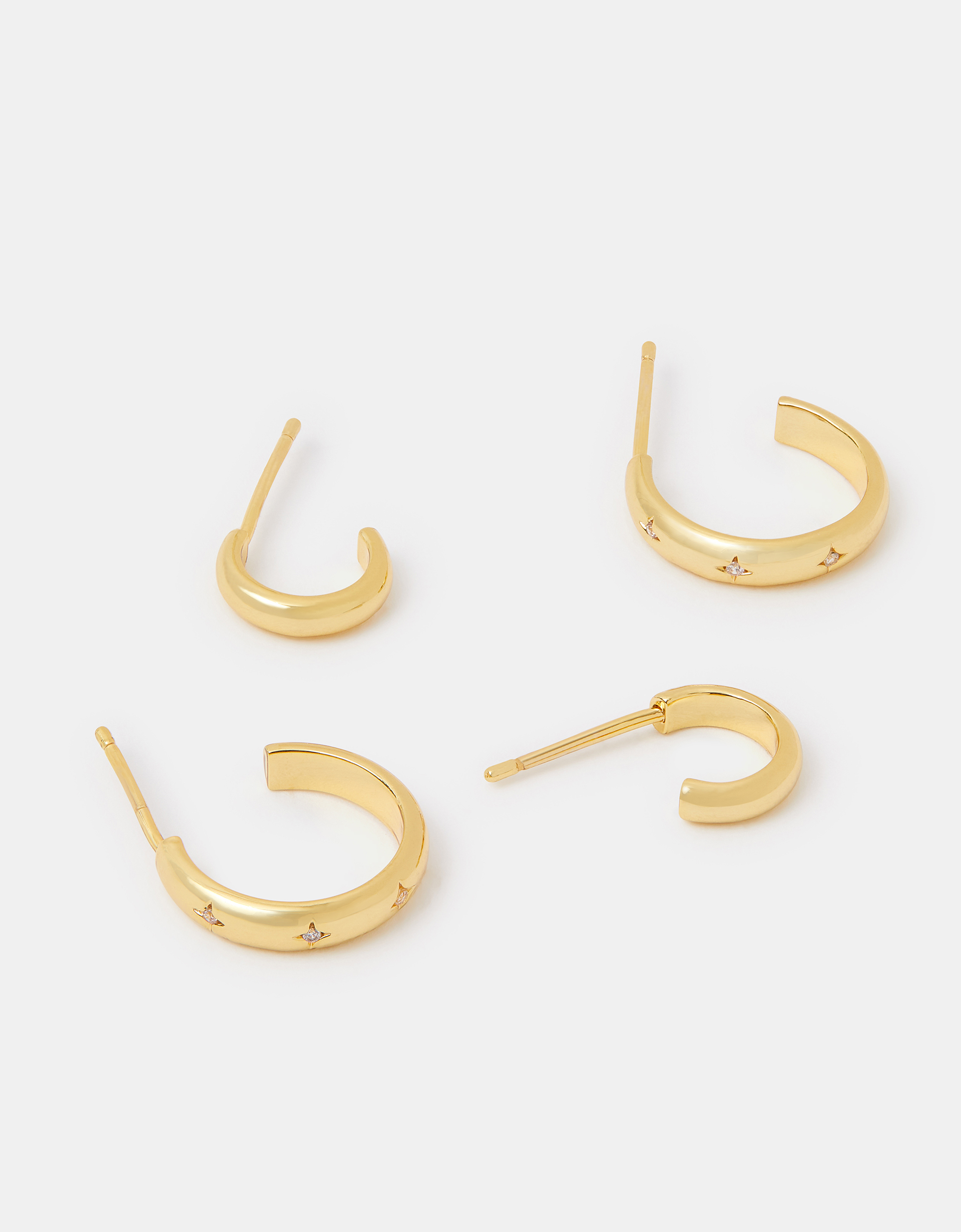 Part of the Z by Accessorize collection. Written in the stars. Perfect for everyday styling, these hoop earrings feature petite star engravings and sparkly crystal embellishments. Two included. Plated in 14 carat gold for a luxe, longer-lasting finish. Non-refundable.