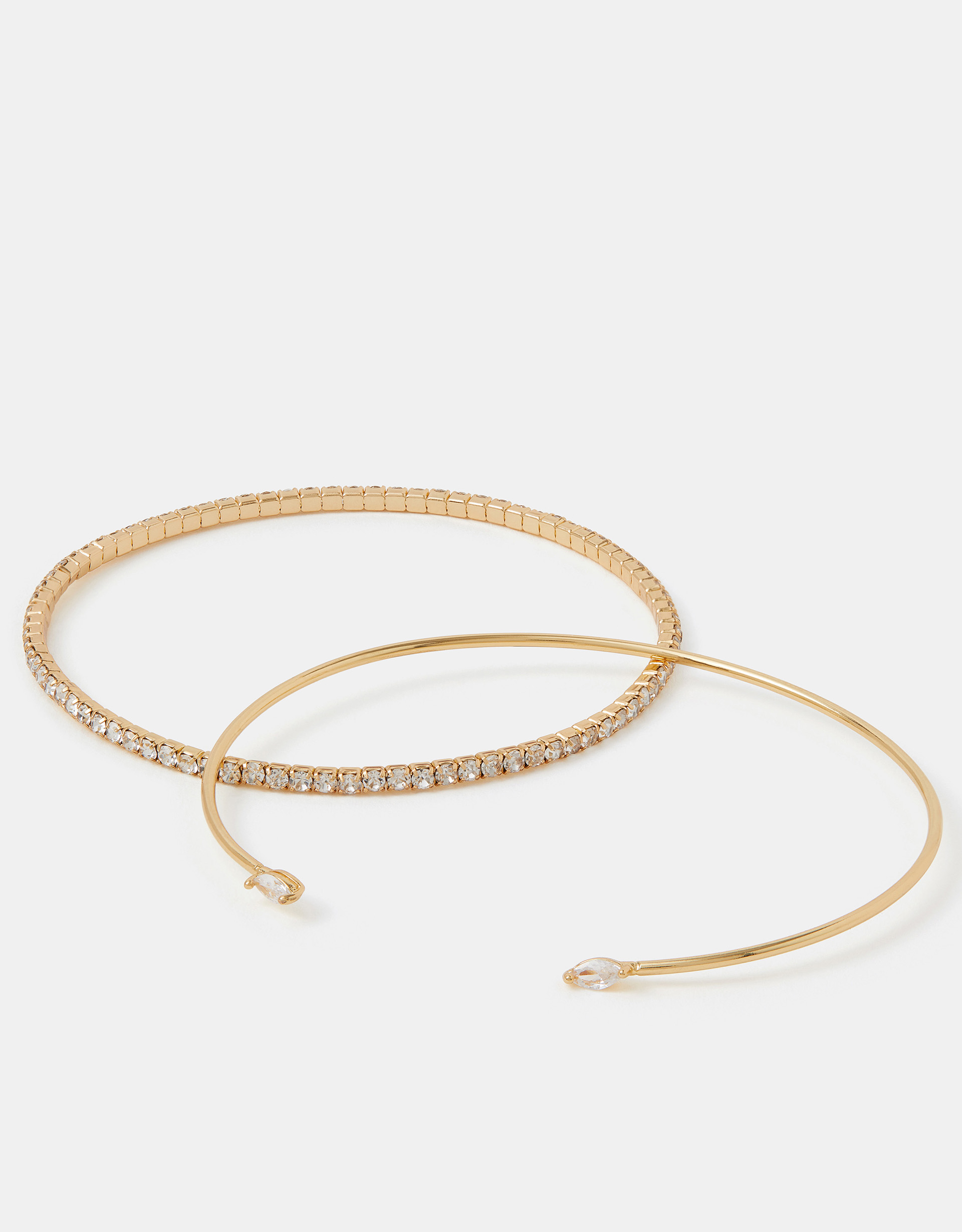 Part of the Z by Accessorize collection. Serving timeless glam and endless sparkle for your night-out wrist stack. This set includes a stretch tennis bracelet and a simple bangle with cubic zirconia stones at each end.Plated in 14 carat gold for a luxe, longer-lasting finish.Two bracelets included.