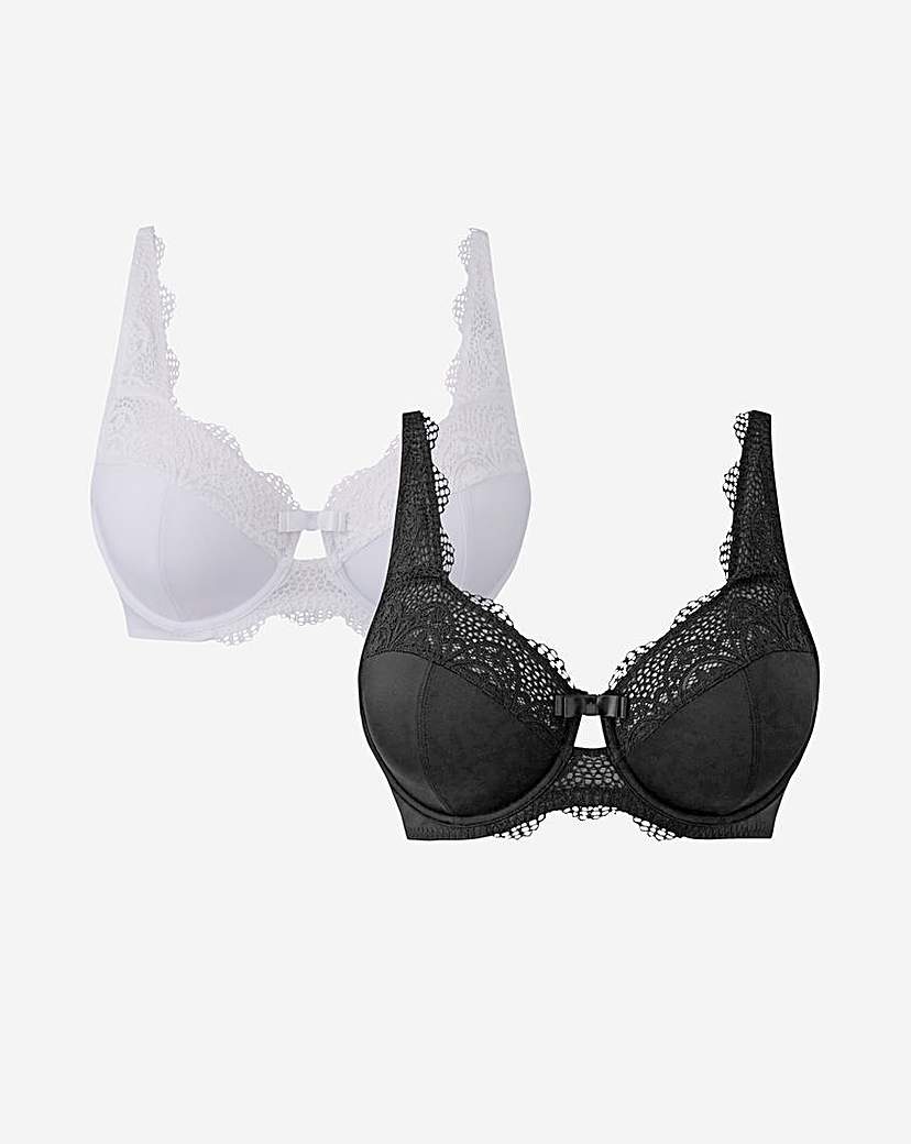 A great basic for every day wear, the Lottie bra features lace detail straps, comfortable underwiring and an elegant full cup that both smooths and supports. Sold as a two pack. Full cup style with non-padded cups. Keyhold detailing to the front and centre bow. Underwired.