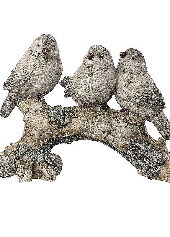 Add woodland charm to your seasonal displays with our charming 3 Resin Birds On A Branch Ornament. The ornament features intricately detailed birds resting on a weathered wooden branch, enhanced by mossy greens and earthy tones. The realistic textures make it eye-catching and unique, perfect for nature-inspired decor.Indoor use onlyDimensions approx. 14H x 21W x 10D cm