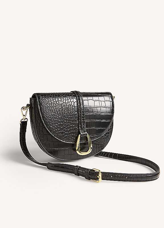 365 by Freemans Black Croc Rosa Ring Saddle Crossbody Bag