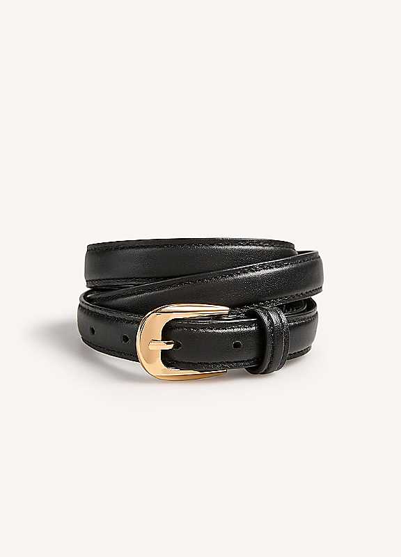 This 365 by Freemans black leather belt is a must-have accessory for any wardrobe. Made from high-quality leather, it not only adds a touch of sophistication to any outfit, but also provides durability and longevity. The sleek and minimal design makes it suitable for both formal and casual occasions. With its adjustable length and sturdy buckle, it offers comfort and a perfect fit. Elevate your style with this versatile and timeless belt. LeatherSmall/Medium length approx. 103 cmLarge/Extra Large length approx. 123 cm | high quality leather belt, black leather belt gold buckle, adjustable leather belt