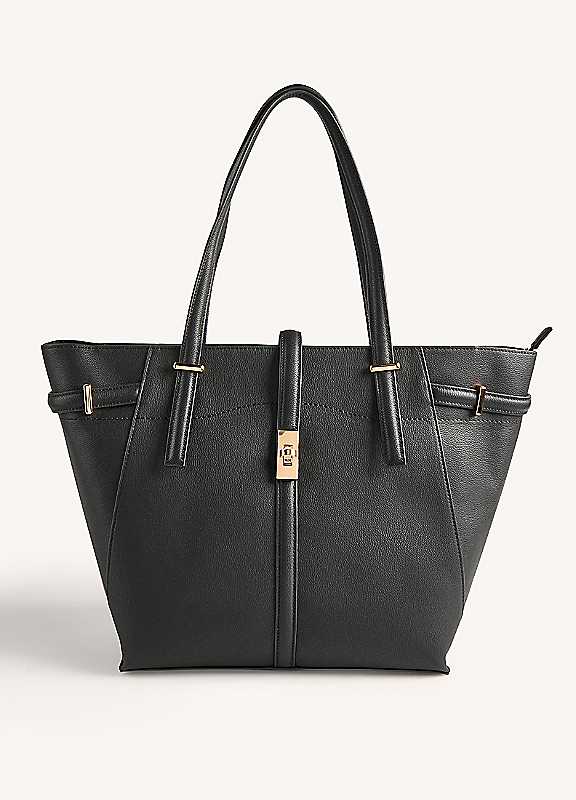 This Black Tess Tote Bag by 365 by Freemans is a stylish and functional accessory for every wardrobe. With a spacious interior and durable design, it's perfect for carrying all your essentials. The popper closure ensures your belongings stay safe and secure while on the go. Get yours today and elevate your daily style!Faux LeatherDimensions approx. 31H x 15W x 47L cm | top handle tote, womens tote bag, large tote bag, faux leather tote, work tote bag