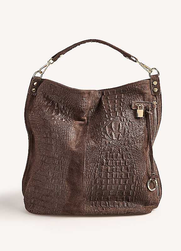 365 by Freemans Italian Leather Chocolate Croc Embossed Shoulder Bag - Size ONE SIZE