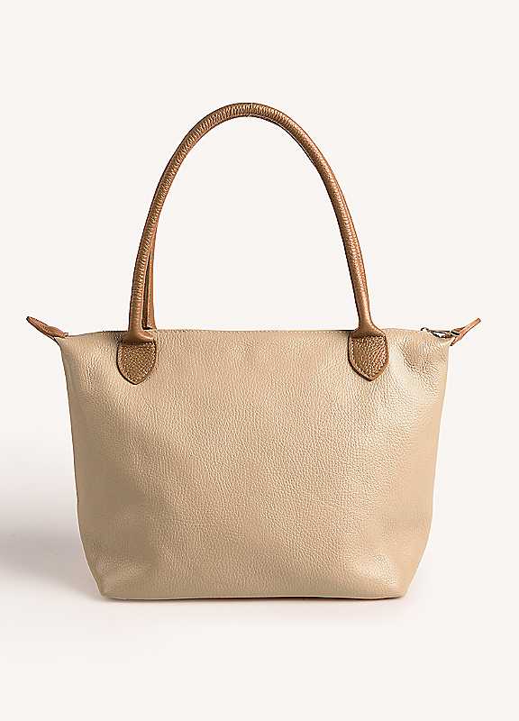 The Italian Leather Taupe Shoulder Bag is a stylish and versatile addition to your collection. Made with high-quality leather, this bag is durable and long-lasting. The spacious interior and multiple pockets make it perfect for organizing and carrying all your essentials. Whether you're heading to work or a night out, this bag has got you covered. With its sleek design and neutral colour, it can easily complement any outfit. Upgrade your wardrobe with the Italian Leather Taupe Shoulder Bag from 365 by Freemans. Leather Dimensions approx. 24W x 21H x 13D cm | italian leather bags, long strap shoulder, casual shoulder bag, taupe leather bag, bag with zipper, bag lining, neutral colored bags, minimalist handbags