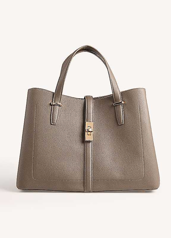 The Porcini Freya Grab Bag from 365 by Freemans is a must-have for any fashion-forward individual. Its sleek design and sturdy construction make it the perfect addition to your collection of handbags. With a popper closure, you can keep your belongings safe and secure while on-the-go. This bag is versatile and can be used for casual occasion, whether you're heading to work or out for a night on the town. Add a touch of style and functionality to your wardrobe with this chic grab bag.Faux LeatherDimensions approx. 24H x 34L x 15D cm | magnetic closure bag, neutral colored bags, casual work bag, classic handbags, faux leather purse, top handle handbags