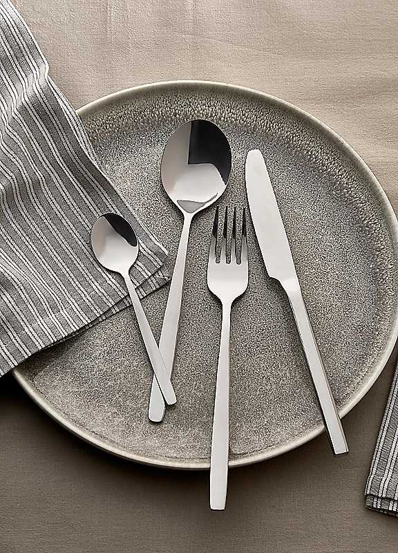 It does not lose usability in its modern lines and seeks a balance between modesty and boldness. Set consists: 4 of each - knives, forks, table & teaspoons. Dishwasher safe. Stainless Steel (18/0)