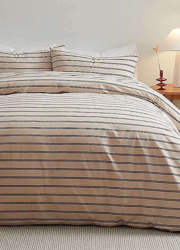 Crafted from 100% cotton, this yarn dyed stripe bedding is both modern and timeless creating an inviting and stylish atmosphere. Duvet set comprises of duvet cover and pillowcase(s), one with the single and two with the double, king and super king. Button fastening Machine washable Tumble dry in low 100% Cotton