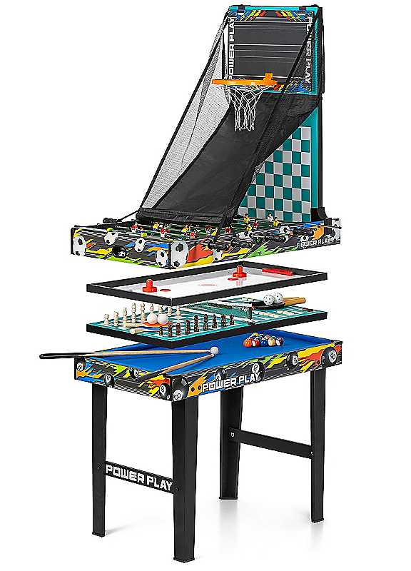 The Power Play 10-in-1 Foldable Games Table! Enjoy 10 classic games: pool, table football, air hockey, table tennis, pickleball, chess, checkers, backgammon, basketball, and magnetic darts. Its compact and foldable design makes it easy to store - tuck it away against a wall, under a bed, or in a cupboard when not in use. Perfect for any room, big or small! It's great for improving reflexes and coordination. Perfect gift for birthdays, Christmas, or family game nights!10 GAMES IN 1: The Power Play foldable games table offers endless fun with pool, table football, air hockey, table tennis, pickleball, chess, checkers, backgammon, basketball, & magnetic darts - ideal for family game nightsFOLDABLE DESIGN: The compact 3ft multi games table easily folds for storage, fitting under beds, against walls, or in cupboards - perfect for saving space in any room, big or smallGAME NIGHT FUN: The mini games table brings the excitement of classic games like pool, table football & table tennis into your home, making it a top choice for family fun & exciting giftsSKILL BUILDING: Suitable for kids ages 5+, this mini games table helps improve reflexes, coordination, & strategic thinking with football games, chess, & table tennisPERFECT GIFT: Whether it's for birthdays, Christmas, or just because, this mini games combo table is the ultimate gift for boys, girls & families alikeAge Suitability: 5+