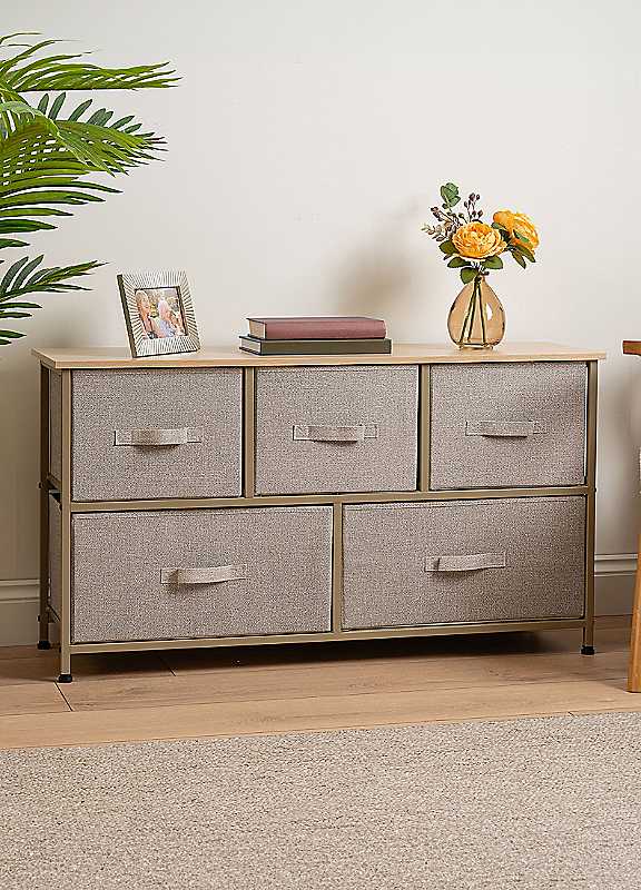 5 Drawer Cabinet with Fabric Drawers - Beige