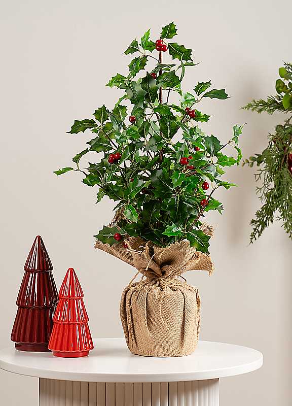 60cm Artificial Holly Tree with Hessian Base