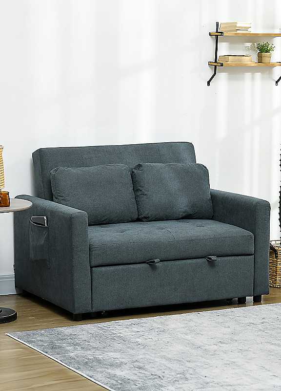 Maximise your living space with this elegant and practical two-seater sofa bed, perfect for accommodating overnight guests or relaxing in style. Designed to effortlessly switch between sofa and bed modes, this versatile piece is a must-have for any home. The click-clack design allows you to quickly convert the sofa into a single bed in seconds, making it perfect for guests or small spaces. Choose from three backrest angles (105°, 130°, and 180°) to customise your comfort- whether sitting upright, reclining, or lying flat. Filled with high-density foam, supported by serpentine springs and elastic bands for a soft yet bouncy feel.Maximum Load: 240 kgAssembly: Recommended for two people, assembly requiredElegant velvet-feel upholstery: Soft, breathable, and luxurious to the touch, adding a sophisticated look to your roomConvenient storage: Side pockets provide handy space for remotes, books, or magazinesDurable construction: Solid eucalyptus wood frame ensures long-lasting stability and supportVelvet (100% Polyester), Eucalyptus Wood, FoamSofa dimensions approx. 86H x 120W x 84D cmBed dimensions approx.44H x 101W x 178D cmSeat size approx. 101W x 58D cmSeat height approx. 45 cmSeat thickness approx. 14 cmBack thickness approx. 13 cmArmrest size approx. 11W x 85D cmArmrest height approx. 16 cmPillow dimensions approx. 45L x 30W x 13D cm (two pillows included)Please remember to measure your available space before ordering. If using on an un-carpeted floor we recommend rubber or felt protection pads be used under the legs to avoid damage to your floors.