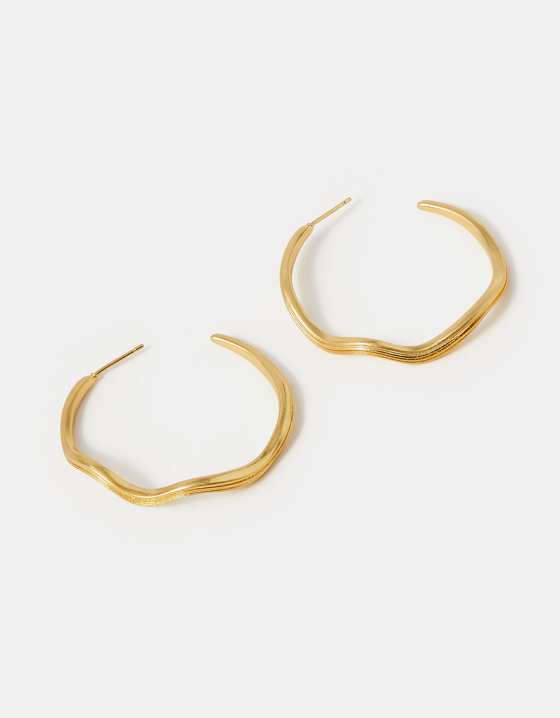 Accessorize 14ct -Plated Wave Hoop Earrings, Gold