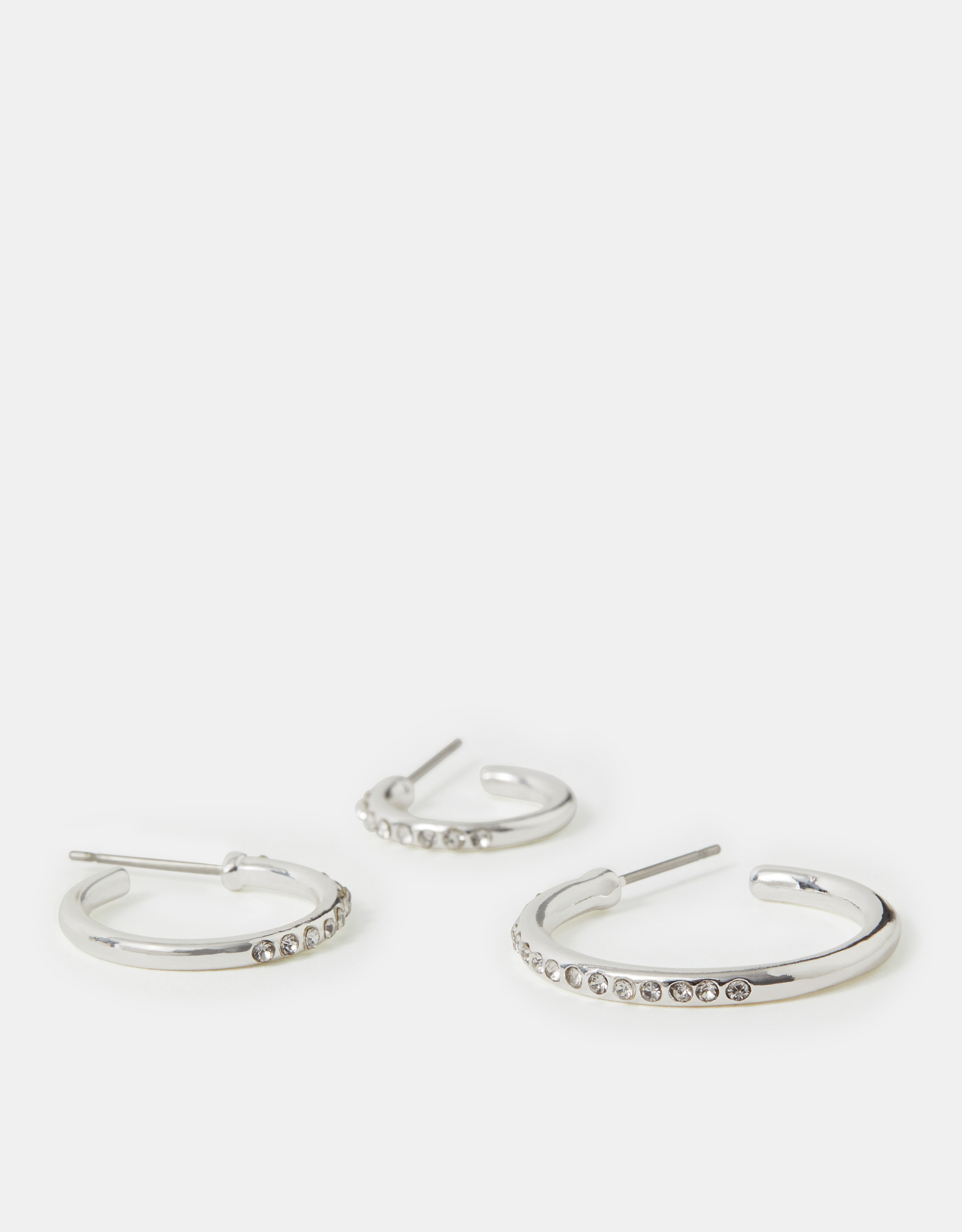 Accessorize 3-Pack Diamanté Hoop Earrings, Silver