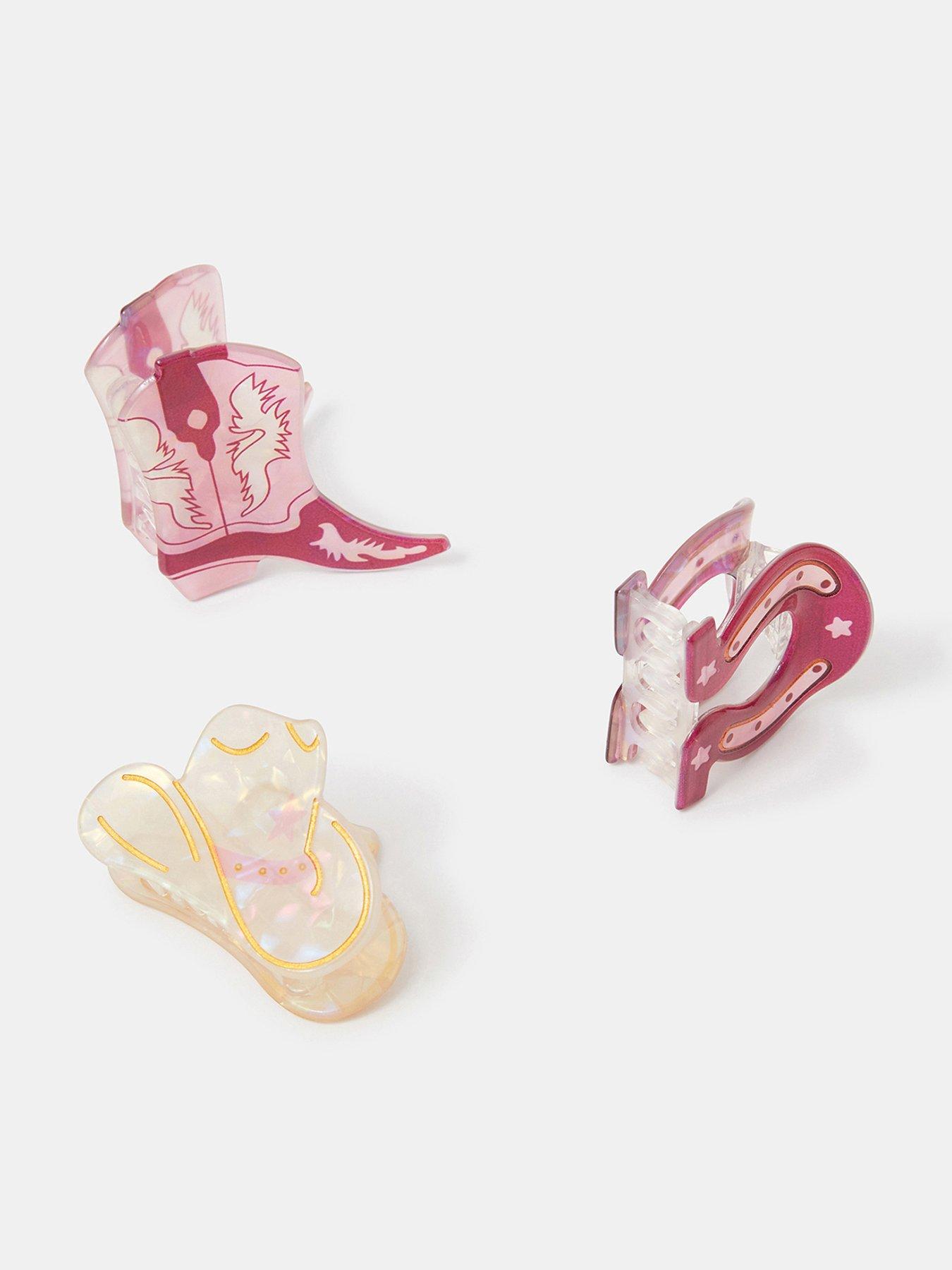 Accessorize 3-Pack Mini Cowboy Claw Clips Adding Western Touches To Your Look, These Mini Claw Clips Are Galloping To Be Part Of Your Collection. Crafted With Shiny Resin, The Pack Includes Horseshoe, Cowboy Hat And Boots Designs. Yeehaw! Three Included. Material Content: Composite: Acrylic 95% , Iron 5% Washing Instructions: Wipe Clean