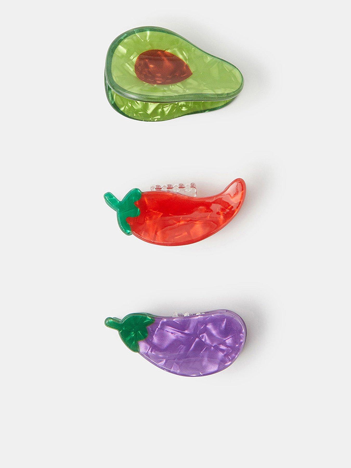 Accessorize 3-Pack Mini Fruit & Veg Claw Clips Pov: You'Re Going To The Local Farmers Market. Adding Pops Of Colour And Endless Fun To Your Hair, These Miniature Claw Clips Are Shaped Like A Chilli, Avocado And Aubergine. Three Included. Material Content: Composite: Acrylic 97% , Iron 3%