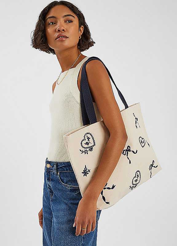 Accessorize Bow Embroidered Shopper Bag - Natural - Size ONE SIZE