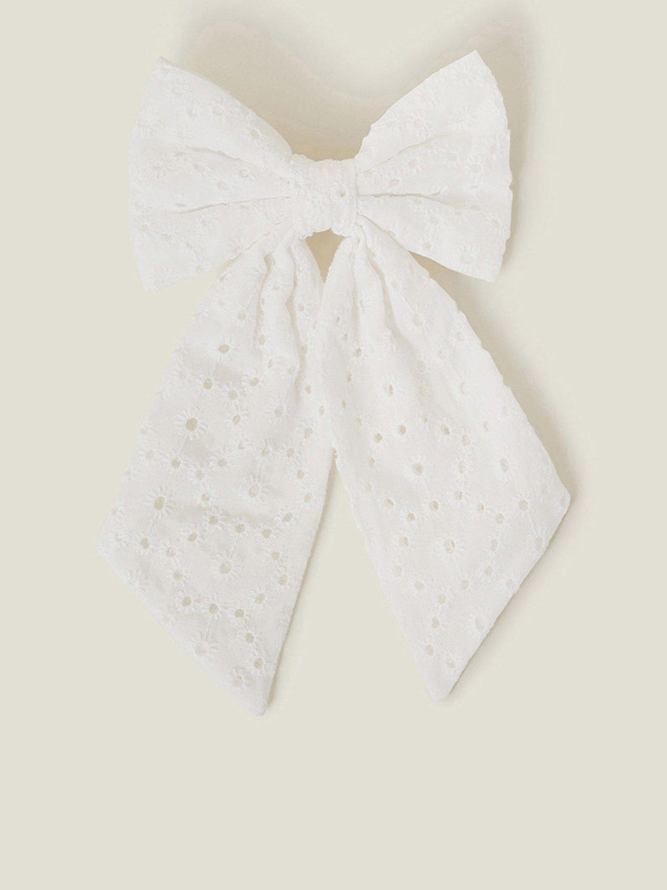 Accessorize Broderie Bow Barrette Hair Clip Size & Fit One Size Details Broderie Bow Barrette Hair Clip by Accessorize White Large hair bow Broderie fabric Silver barrette clip