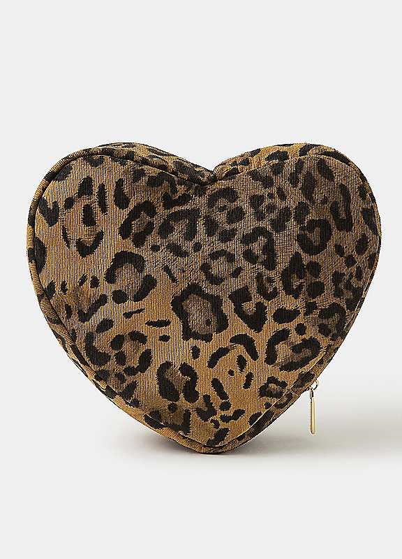 Accessorize Corduroy Heart Make Up Bag - Leopard - Size ONE SIZE