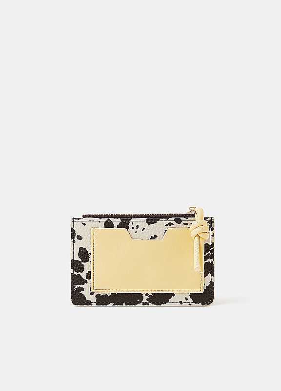 Moo-ving your essentials in style. Made in faux leather with a cow print design, this card holder features a zip fastening and outer slip pocket.Wipe cleanOuter: 100% Polyurethane (PU)Lining: 100% Recycled PolyesterDimensions approx. 8H x 1W x 12L cm