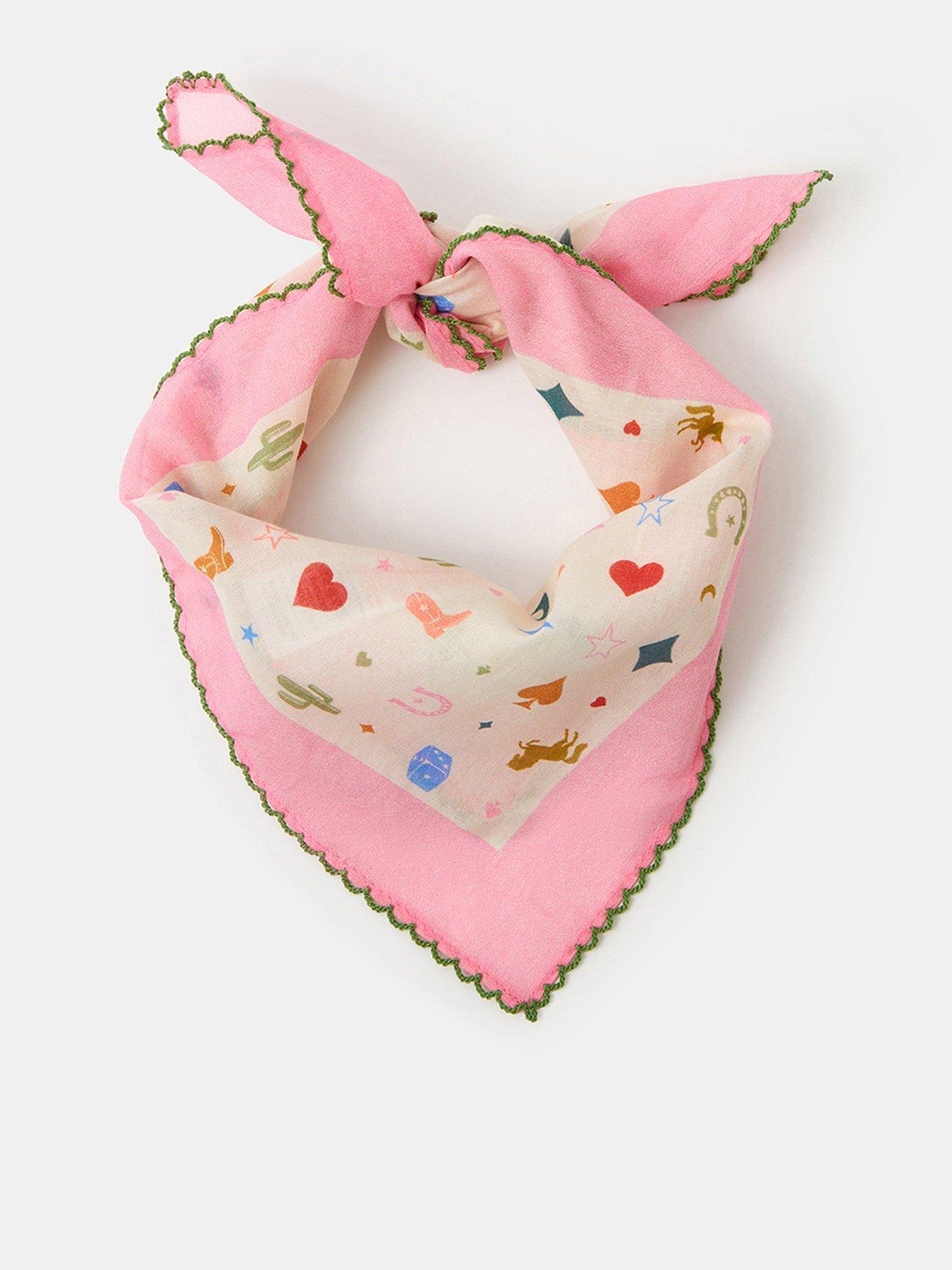 Accessorize Cowboy Print Square Cotton Scarf This Ain'T Our First Fashion Rodeo... Whether Styled Like A Neckerchief Or Bandana In Your Hair, This Scarf Is A Playful Addition To Your Collection. Made From Soft Cotton And Printed With Colourful Cowboy Motifs, It'S Finished With A Pink Border And Green Scalloped Edges. Cute, Right? Material Content: Composite: Polyester 100%