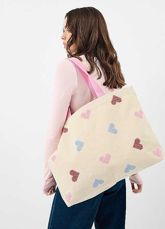 Calling all crafters! Cross stitched with cutesy hearts, this shopper is made for last minute food shops and running errands. It's designed with sturdy shoulder straps for extra support. An essential, no?100% CottonDimensions approx. 50L x 7W x 34H cm