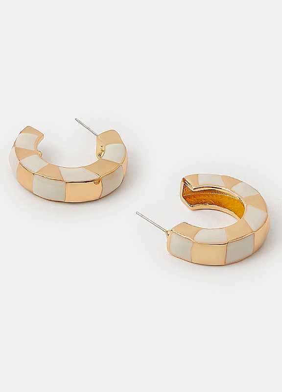 A great addition to your accessory collection, these chunky hoop earrings boast a check pattern with a pearly-tone enamel finish and golden touches.Wipe clean80% Iron, 10% Enamel, 10% Zinc (Recycled)Length approx. 3 cm | statement earrings, casual earrings, chunky gold earrings, small hoop earrings, enamel hoop earrings, gold hoop earrings, silver hoop earrings