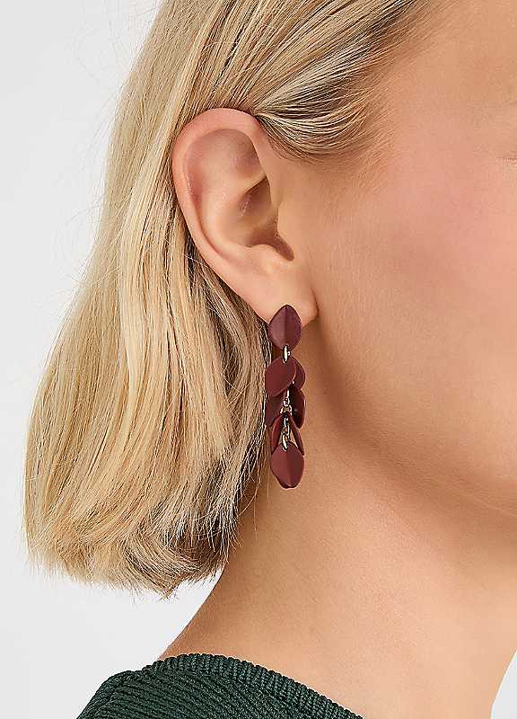 Beautiful in burgundy, these drop earrings comprise endless willow leaves that'll dance in the breeze.Wipe clean70% Iron, 30% EnamelLength approx. 5 cm | statement dangle earrings, burgundy statement earrings, maroon long earrings, enamel earrings, statement earrings, dangle drop earrings, long drop earrings, long dangle earrings, iron earrings, statement drop earrings, large drop earrings, maroon earrings, long leaf earrings, leaf dangle earrings