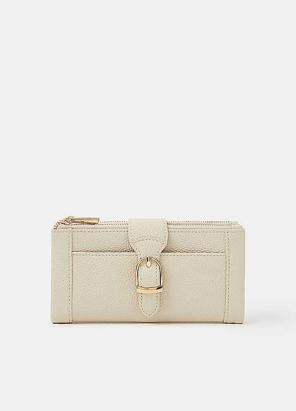 Accessorize Faux Leather Buckle Purse - Cream - Size ONE SIZE