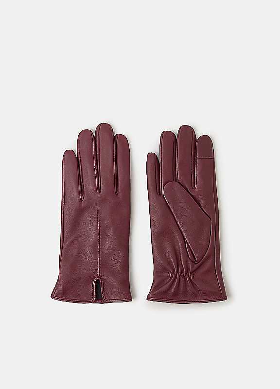 Accessorize Fleece Lined Touchscreen Leather Gloves - Burgundy - Size S/M