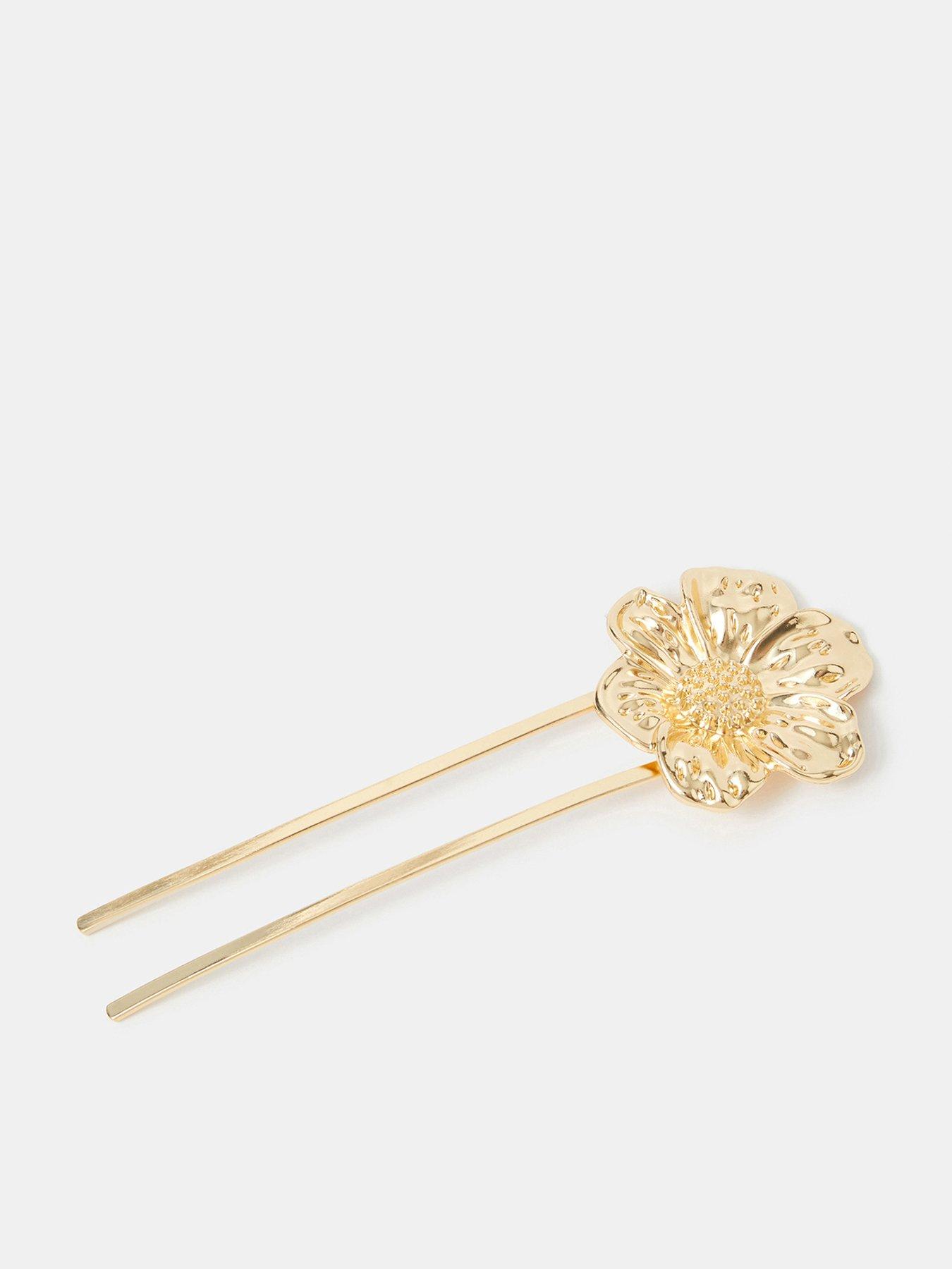 Accessorize Flower French Pin Say Bonjour To A New Look! Dipped In A Golden Tone, This French Pin Is Designed With A Flower At The Top. Who Knew That Putting Your Hair In An Updo Could Look So Cute? Material Content: Composite: Alloy 100%