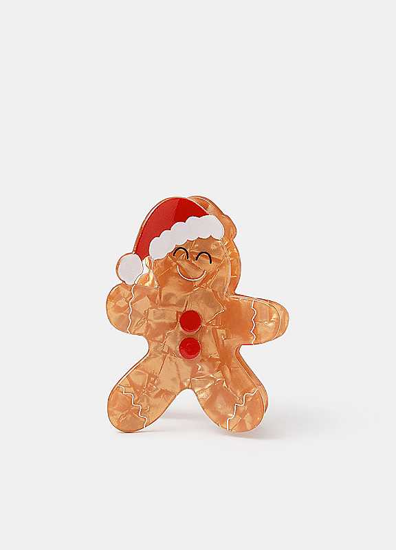 What's winter without baked treats? Shaped like a sweet gingerbread man with a shiny, warm finish, this hair clip will bring some festive cheer to your hairstyles.Wipe clean80% Acrylic, 15% Acrylonitrile Butadiene Styrene, 5% IronLength approx. 6 cm