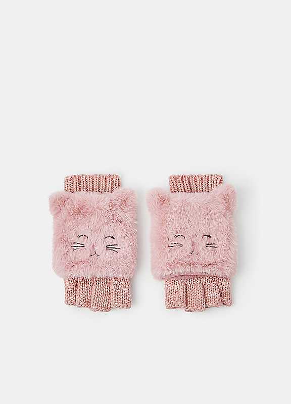 Accessorize Girls Cat Fingerless Mitten Gloves - Pink - Size 3-5
