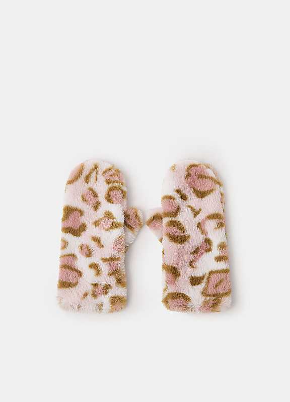 Accessorize Girls Fluffy Leopard Print Mittens - Size 6/8YEARS