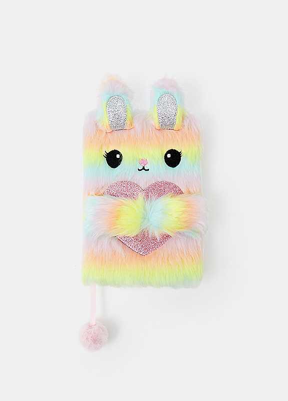 Accessorize Girls Ombre Fluffy Bunny A5 Notebook - Pastel Multi - Size ONE SIZE
