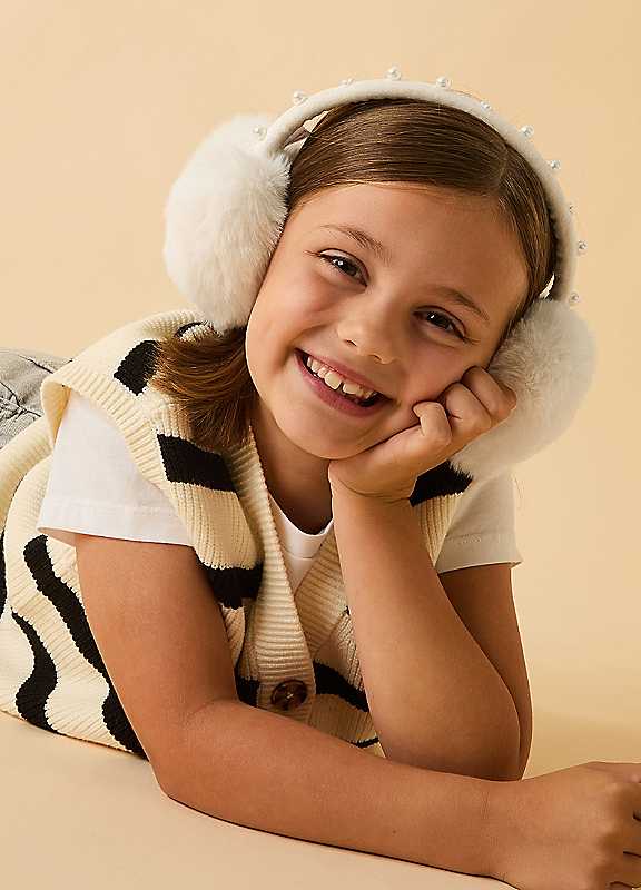 Accessorize Girls Pearl Embellished Earmuffs - Ivory - Size ONE SIZE