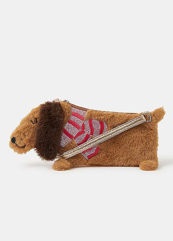 Unleash the cuteness! A dashing accessory for their playful weekend looks, this bag is shaped like a sausage dog with a strap to style across the body. Finished with a zip fastening for storing their little essentials (and dog treats, perhaps)?100% PolyesterLength approx. 27 cm