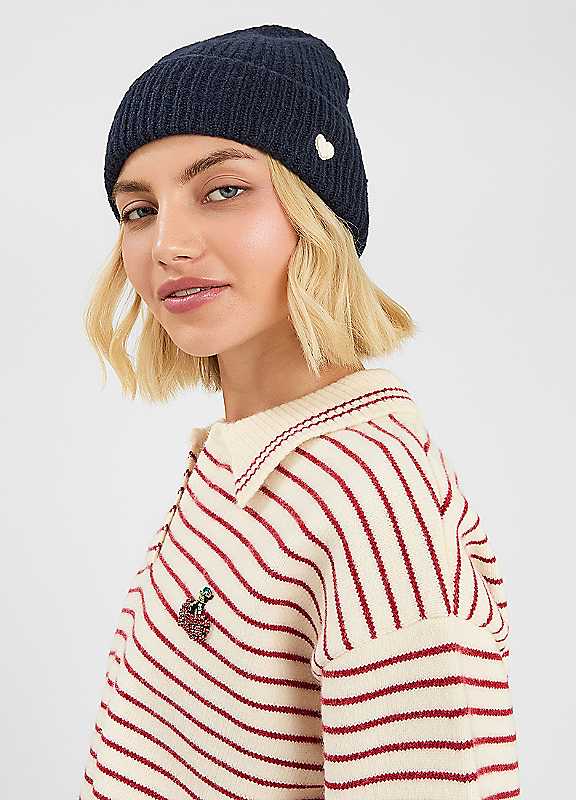 Not only does this beanie keep you warm and toasty on cold winter days, it covers up any bad hair days, too (win, win)! Stitched with cosy yarns in a soft ribbed finish, it's designed with a turned-up brim and cute heart patch embroidered at the side.Hand wash78% Acrylic, 19% Polyamide, 3% ElastaneSize approx. 22L x 22W cm | embroidery beanie, embroidered knit hat, acrylic beanie, ribbed knit beanie, navy beanie hat, logo beanie hat, casual beanie, knitted beanie hat, embroidered hat logo, winter beanie hat, navy knit hat, embroidered winter hat, solid color hat, warm beanie hat, beanie with brim, hat with logo, womens winter hat