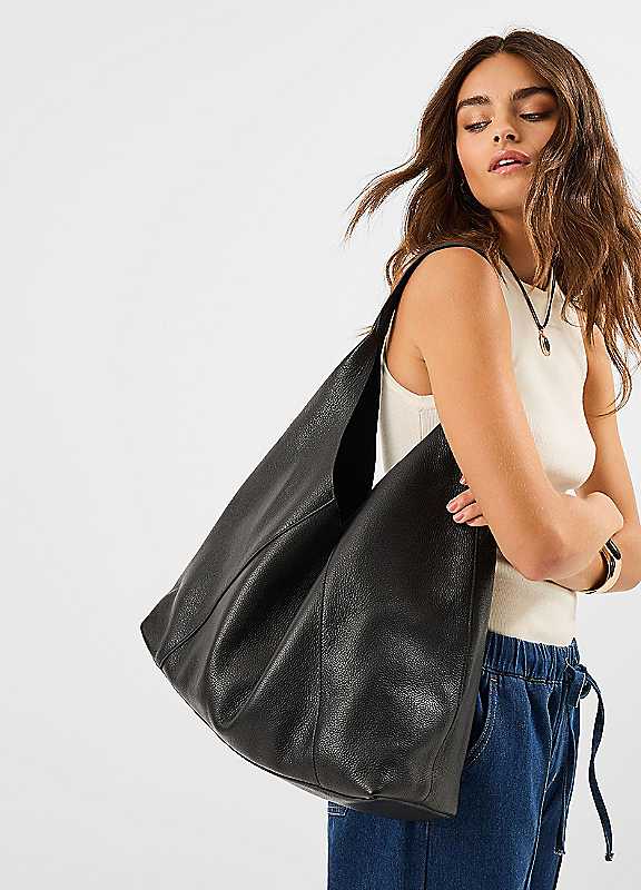 Accessorize Large Slouchy Leather Shoulder Bag - Black - Size ONE SIZE