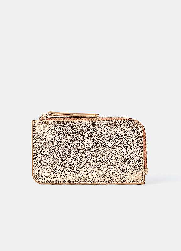 Accessorize Leather Metallic Card Holder - Gold - Size ONE SIZE