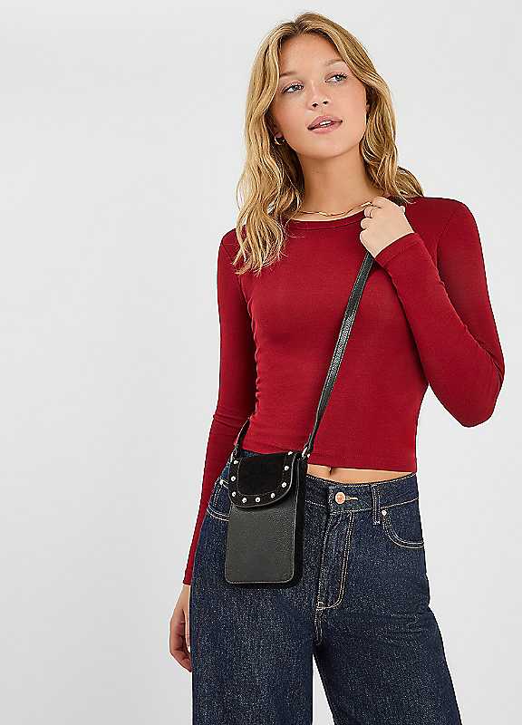 Accessorize Leather Stud Phone Bag - Black - Size ONE SIZE