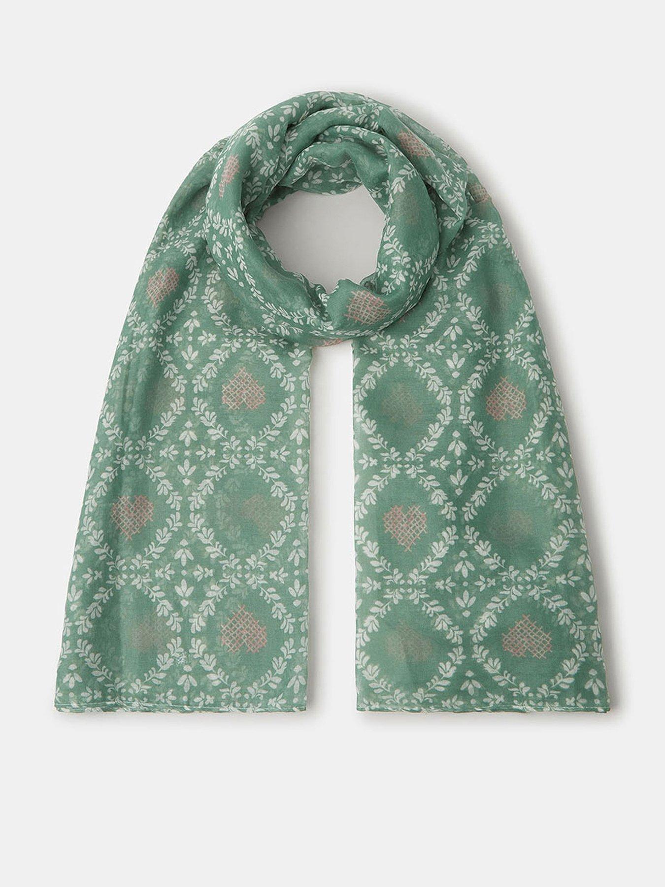 Accessorize Lightweight Cross Stitch Heart Scarf - Green - Women