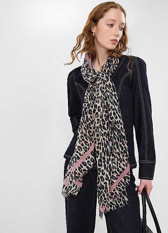 Show off your wild side in every season. Spun with lightweight yarns and printed with leopard spots, it's a great pick for styling like a shawl in the warmer months, or wrapping round like a scarf when temperatures drop.100% Polyester (Recycled)Length approx. 180 cm