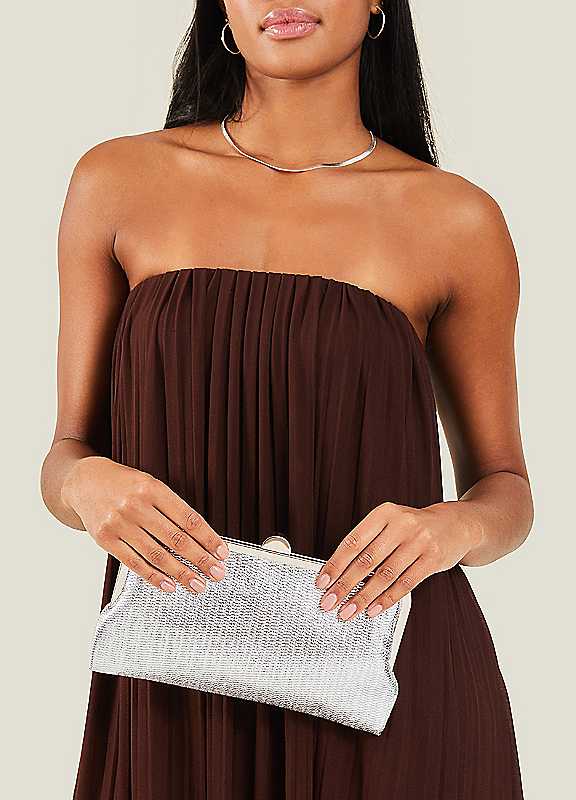 Accessorize Metallic Clutch Bag - Silver - Size ONE SIZE