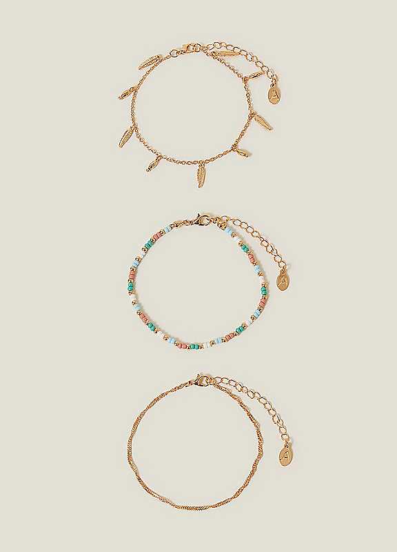 Accessorize Pack of 3 Leaf Charm Anklets Gold