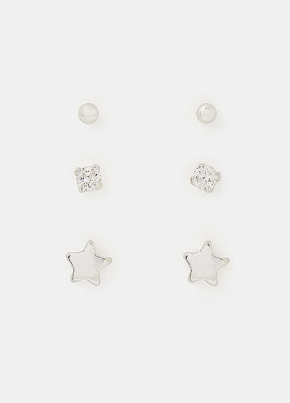 Accessorize Pack of 3 Sterling Silver Star Stud Earrings - Size ONE SIZE
